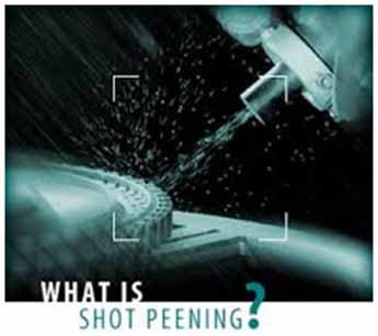 SHOT PEENING is a cold working controlled process used to produce a compressive residual stress layer and modify the mechanical properties of variety of different metals. it entails impacting a surface by bombardment of shot (metallic balls, glass bead, SCCW or ceramic balls) with a force sufficient to create plastic deformation thus changes surface mechanical properties.