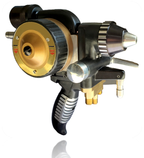 Both guns are offered with air turbine for speed control as per wire diameter, wire type and coating application. The system is offered with wire gun, 2GF Gas Flowmeter, wire reel stand with straightner, gas control unit, air control unit and hose sets.