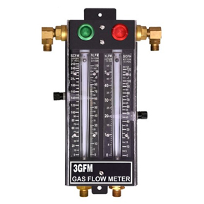 | Gas Flowmeter , Type 3GF with scale in NLPM & SCFH for Fuel & Oxygen Flow rate adjustment as per parameters for each wire. The flowmeter is offered with built-in NRV for safety protection against backfire, which does not allow reverse flow of the gases. |
